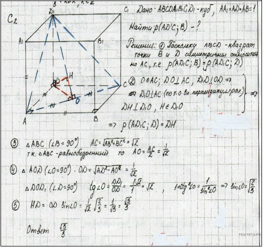 Дан куб ABCDA1B1C1D1. Длина ребра куба равна 1.