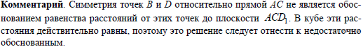 В плоскости BOD1 опустим перпендикуляр BH на прямую OD1. Заметим, что прямая AC перпендикулярна плоскости BOD1 и, следовательно, BH перпендикулярен прямой AC. Таким образом, BH перпендикулярен плоскости ACD1, а длина отрезка BH будет являться расстоянием от точки B до плоскости Рассмотрим четырёхугольник