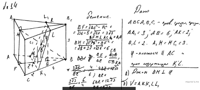 а) Докажите, что плоскость α делит медиану CL основания в отношении 5 : 1, считая от точки C.