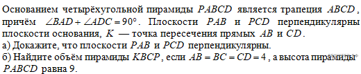 Из перпендикулярности SA ⊥ AB и SA ⊥ AD следует, что SA ⊥ (ABC) и, следовательно, SA — высота пирамиды.