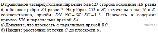 б) Найдите периметр многоугольника, являющегося сечением пирамиды SABC плоскостью α.
