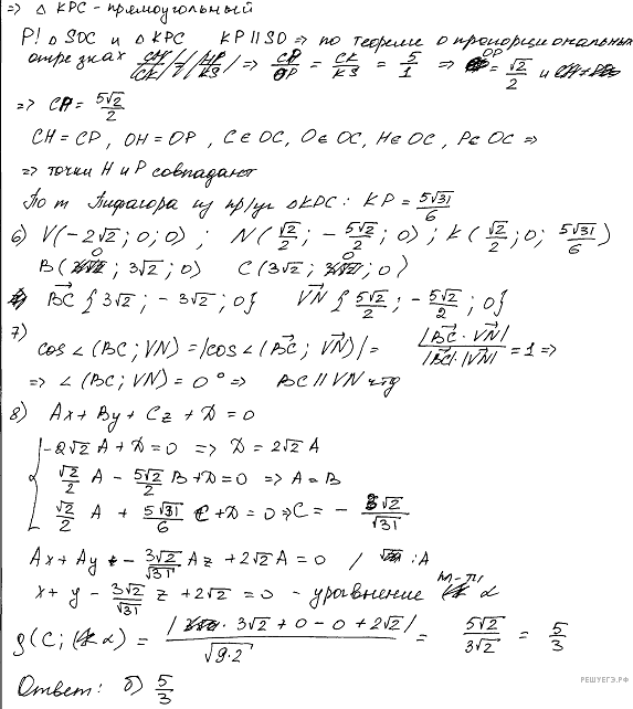 Точка K является серединой отрезка MN, причем KZ ⊥ CE, откуда следует, что KZ || SO, следовательно, ZE = ZO. Так как то