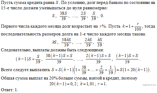 Не снижая общности рассуждений, примем начальную сумму кредита за 100 руб. и будем считать, что выплаты производились