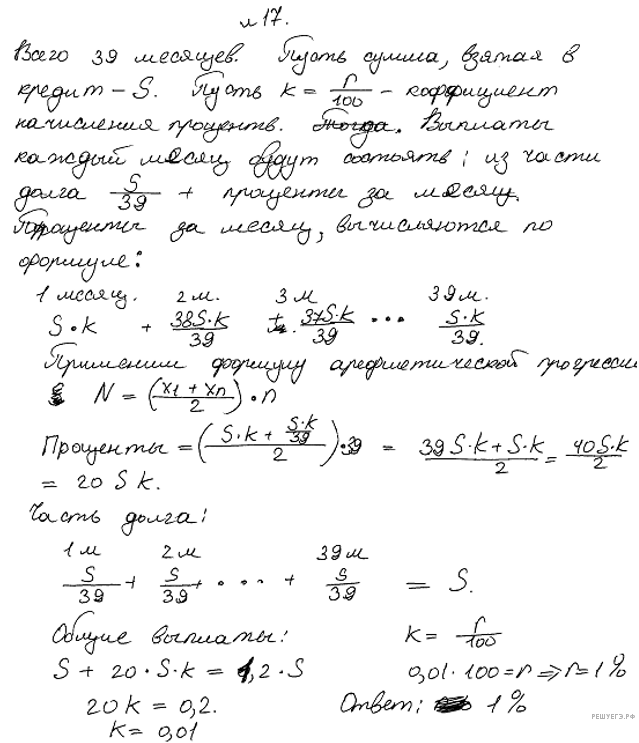 Значит, наибольшая выплата — первая, d = 0,6, то есь всего будет 15 выплат и они составляют арифметическую прогрессию с разностью