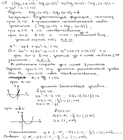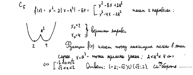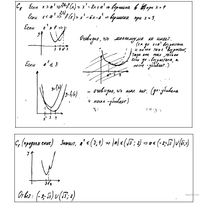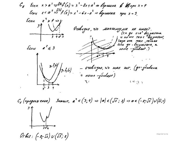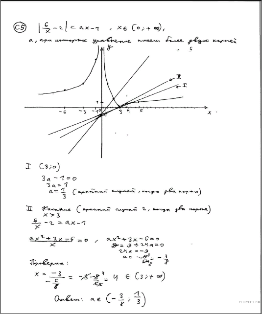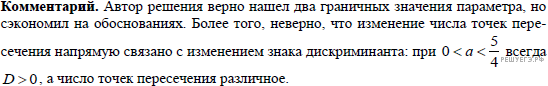 | Получен верный ответ. Решение в целом верное. Обосновано найдены оба промежутка значений параметра из ответа к задаче, при этом возможны неточности с (не)включением концов и(или) вычислительная погрешность | 3 |