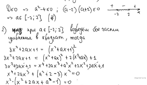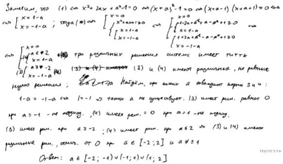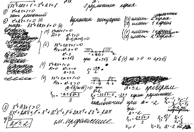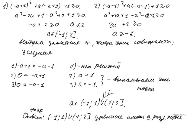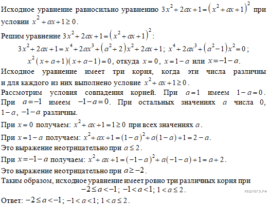 Остаётся учесть те значения a, при которых решение из случая (1) совпадает с одним из решений случая (2). Тогда с учётом
