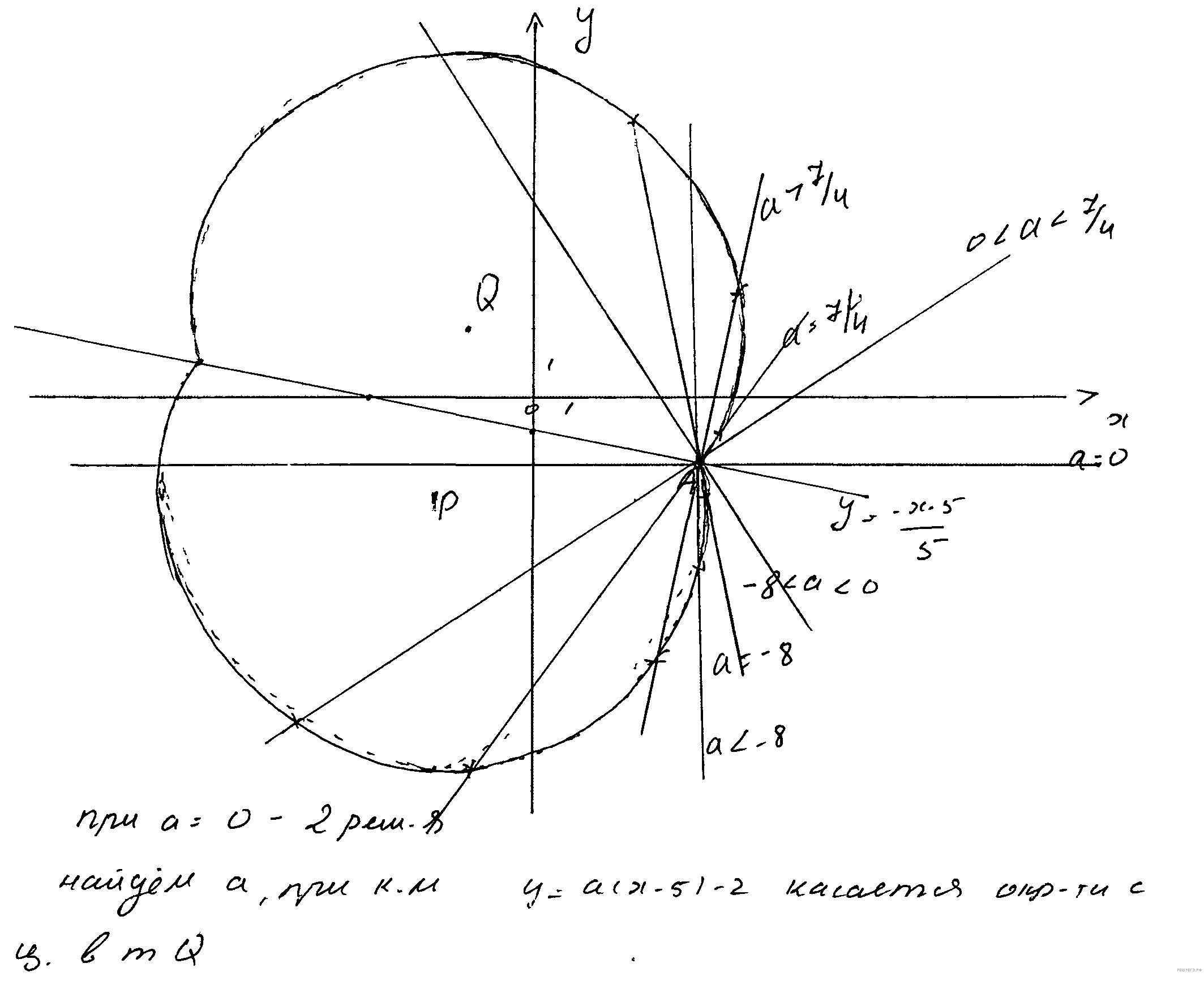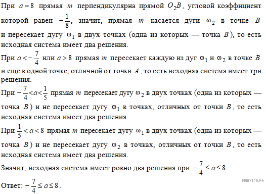При a = 8 прямая m перпендикулярна прямой O2B, угловой коэффициент которой равен значит, прямая m касается дуги