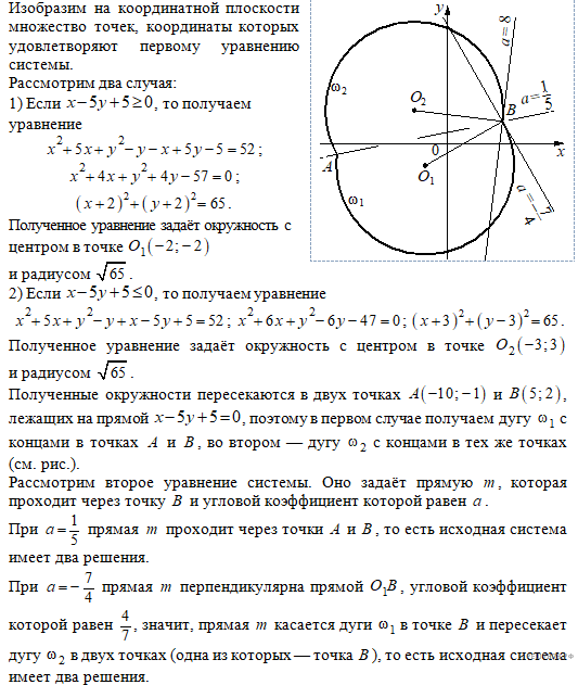 радиуса а. Поэтому задача состоит в том, чтобы найти все значения параметра а, при каждом из которых окружность