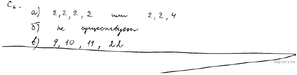 Ответ: а) 2, 2, 2, 2 (или 2, 2, 4): б) нет: в) 9, 10, 11, 11, 11 или 9, 10, 11, 22.
