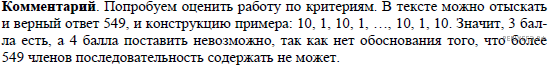 в) Приведём пример последовательности из 549 членов: Сумма её членов равна