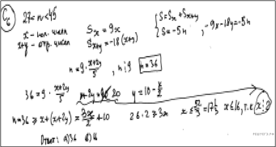 На доске написано более 27, но менее 45 целых чисел. Среднее арифметическое этих чисел равно −5, среднее арифметическое всех положительных из них равно 9, а среднее арифметическое всех отрицательных из них равно −18.