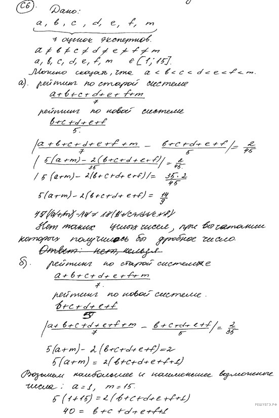 Для оценок экспертов 1, 2, 3, 4, 5, 6, 15 разность A − B равна Значит, наибольшее возможное значение разности рейтингов, вычисленных по старой и новой системам оценивания, равно