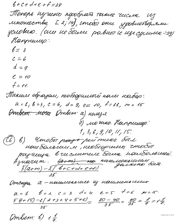 в) Число 9 — наименьшее число в наборе — является наименьшим из задуманных чисел, а наибольшее число в наборе — это сумма всех задуманных чисел. Поэтому количество задуманных чисел не превосходит