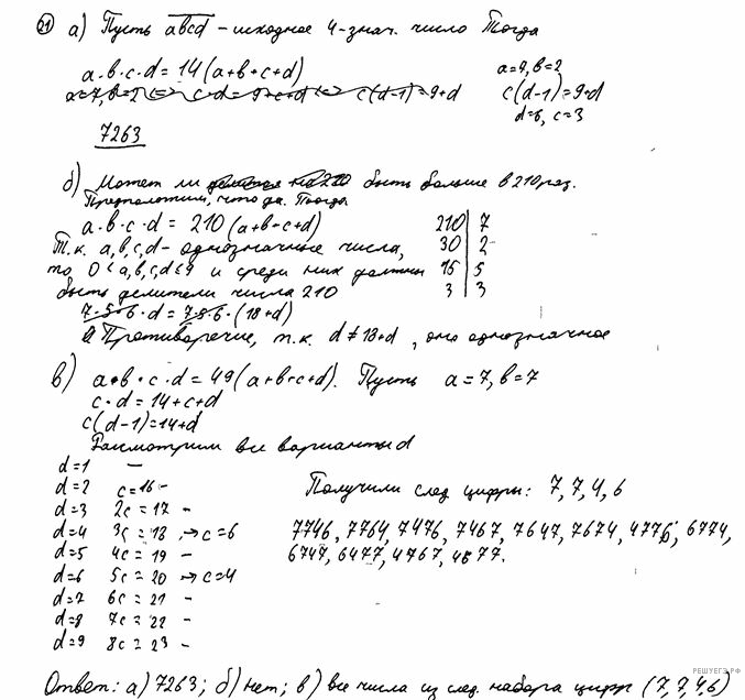 в) Найдите все четырёхзначные числа, произведение цифр которых в 49 раз больше суммы цифр этого числа.