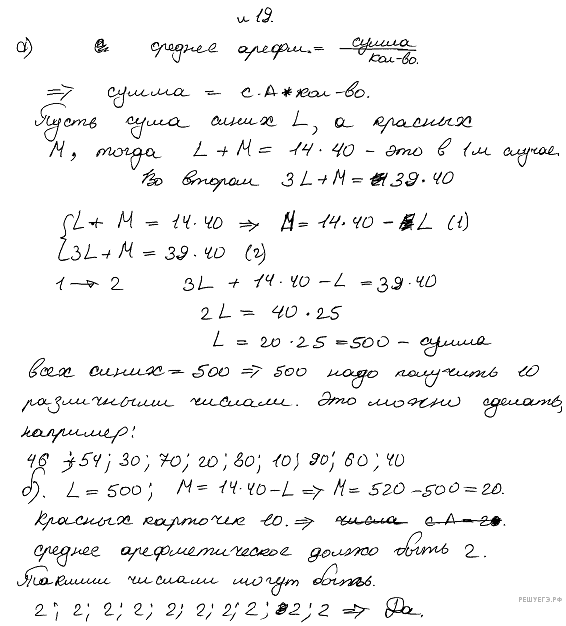 Пусть среди написанных чисел k положительных, l отрицательных и m нулей. Сумма набора чисел равна количеству чисел в этом наборе, умноженному на его среднее арифметическое, поэтому