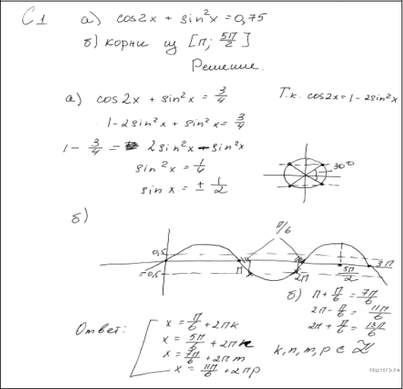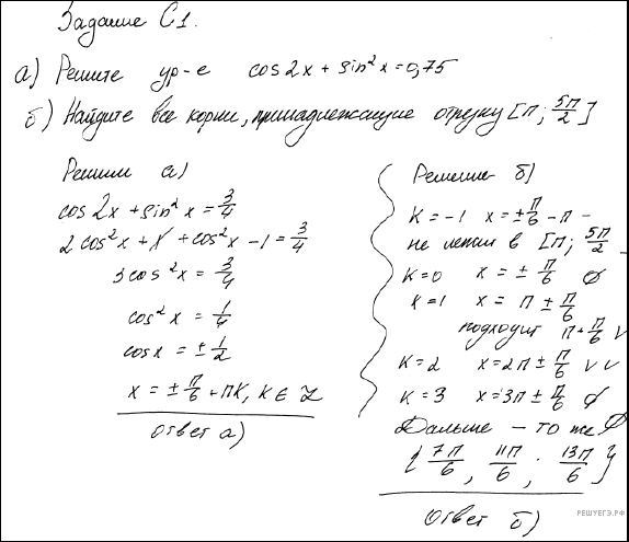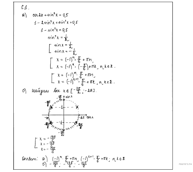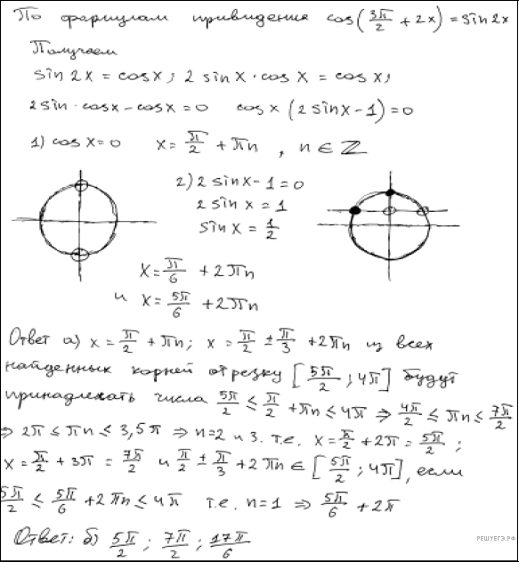 б) С помощью числовой окружности отберём корни, принадлежащие отрезку Получим числа