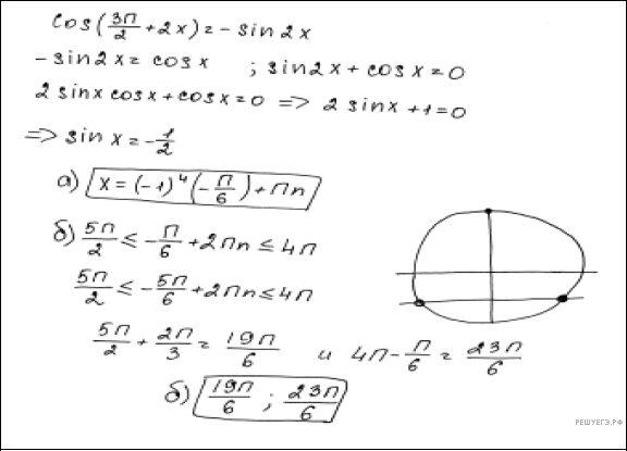 б) Укажите корни уравнения, принадлежащие отрезку