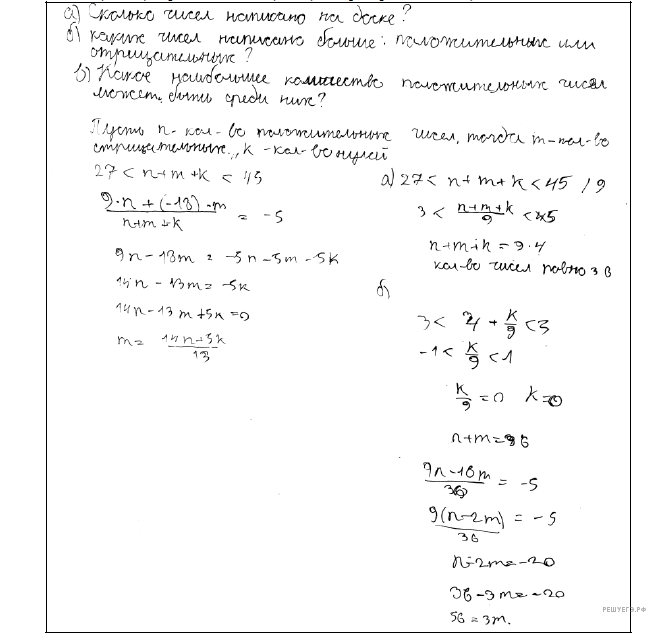 в) (пример) Приведём пример, когда положительных чисел ровно 16. Пусть на доске 16 раз написано число 9, 18 раз написано число −18 и два раза написан 0.