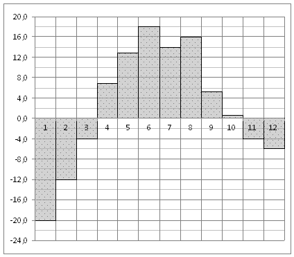 Из диаграммы видно, что было 4 месяца с температурой ниже нуля (см. рис.).
