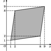 Площадь четырехугольника равна разности площади квадрата 4х4, четырех равных прямоугольных треугольников с катетами 1 и 3 и двух равных квадратов 1х1. Поэтому