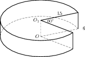 Найдите объем V части цилиндра, изображенной на рисунке. В ответе укажите