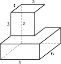 Найдите площадь поверхности многогранника, изображенного на рисунке (все двугранные углы прямые).