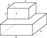 Найдите площадь поверхности многогранника, изображенного на рисунке (все двугранные углы прямые).
