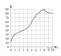 На графике показан процесс разогрева двигателя легкового автомобиля. На оси абсцисс откладывается время в минутах, прошедшее от запуска двигателя, на оси ординат — температура двигателя в градусах Цельсия.