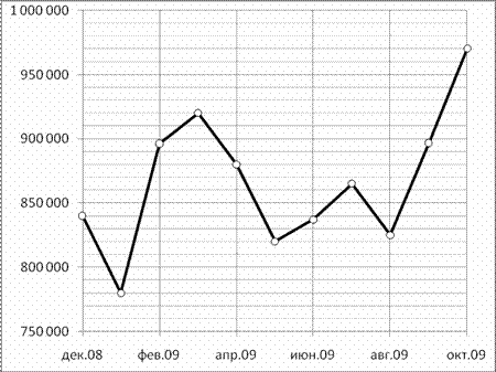 На рисунке жирными точками показана средняя дневная аудитория поискового сайта Ya.ru во все месяцы с декабря 2008 по октябрь 2009 года. По горизонтали указываются месяцы, по вертикали — количество человек, посетивших сайт хотя бы раз за день (среднее за все будние дни месяца). Для наглядности жирные точки на рисунке соединены линией. Определите по рисунку разность между наибольшей и наименьшей средней дневной аудиторией сайта Ya.ru в указанный период.