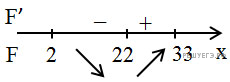 Производная обращается в нуль в точках 22 и −22. Определим знаки производной функции и изобразим на рисунке поведение функции на заданном отрезке: