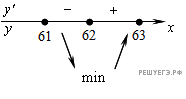 Версия для печати и копирования в MS WordНайдите наименьшее значение функции на отрезке [61; 63].