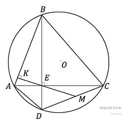 а) Углы ∠BDC и ∠BAC равны, так как они опираются на одну и ту же дугу BC. Тогда в ΔABE угол ∠ABE = 30° (так как ∠BAC = 60°). Обозначим точку пересечения прямой ME со стороной AB за K. Тогда в прямоугольном треугольнике BKE угол ∠BEK = 60°. Далее, ∠BEK = ∠MED = 60° (как вертикальные). Отсюда получаем, что ΔEDM — равносторонний (так как все углы по 60°), то есть EM = ED = MD ~ x. Так как в прямоугольном треугольнике CED против угла в 30° лежит катет, в 2 раза меньший гипотенузы, то CD = 2x. Получили, что так как DM = x, точка M является серединой гипотенузы CD, то есть EM — медиана ΔCED. Что и требовалось доказать.
