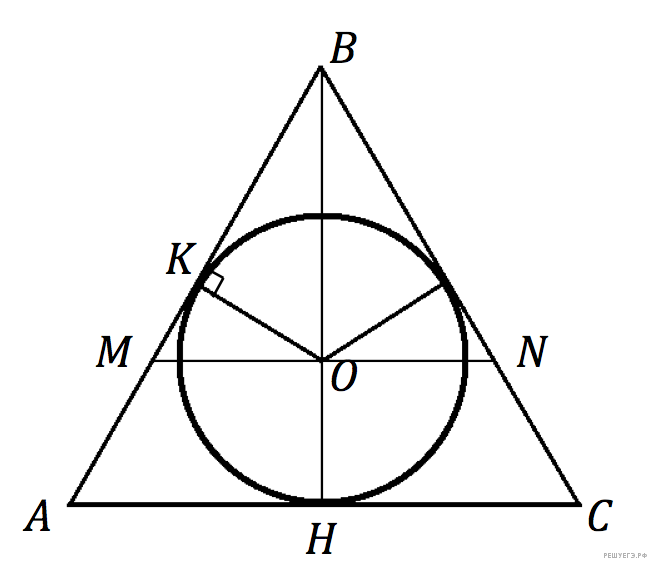 Те­перь: OH = OK = r  — ра­ди­ус впи­сан­ной сферы.