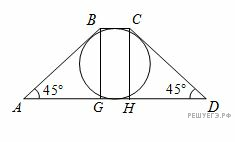 Рассмотрим осевое сечение конуса. В нем получится трапеция ABCD, в которую вписана окружность. Проведем высоты BG и CH из точек B и C. Тогда
