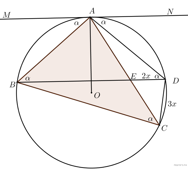 б) Треугольники AEB и DEC подобны по 2-м углам (∠AEB = ∠CED, как вертикальные; ∠ABE = ∠ECD = α, как опирающиеся на одну дугу AD). Тогда