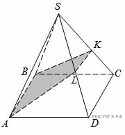 Версия для печати и копирования в MS WordОснованием пирамиды служит параллелограмм ABCD. Через сторону AB и середину K бокового ребра проведена плоскость. Найти отношение объемов получившихся частей.
