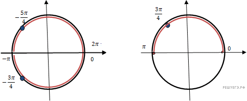 б) Отберём корни, лежащие на отрезке при помощи единичной окружности (см. рис.).
