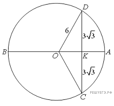 В прямом кругом цилиндре, осевое сечение которого квадрат со стороной 12, хорда CD, равная перпендикулярна диаметру