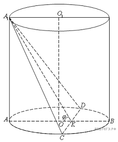 Пусть O — центра основания цилиндра, K — точка пересечения хорды CD и диаметра Тогда