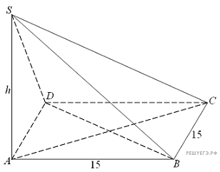 Основанием четырехугольной пирамиды SABCD является квадрат ABCD, а высота пирамиды совпадает с ребром Найти высоту пирамиды, если радиус вписанного в пирамиду шара равен 3, а сторона квадрата ABCD равна 15.