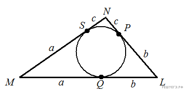 Все по той же причине равенства отрезков касательных проведенных из одной точки.
