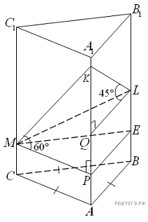 б) Найдите угол между этой плоскостью и плоскостью основания АВС.