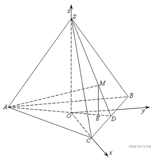 Поместим заданную пирамиду в декартову систему координат, как показано на рис.