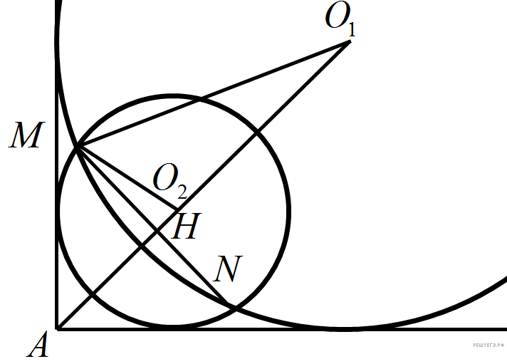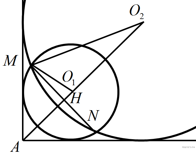— второй окружности, A — вершина прямого угла, тогда