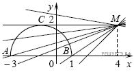 имеет угловой коэффициент больше, чем у прямой MA, и не больше, чем у прямой MB, и пересекает полуокружность в единственной точке. Получаем, что при