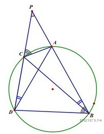 Версия для печати и копирования в MS WordЧетырехугольник ABDC вписан в окружность. Прямые AB и CD пересекаются в точке P.