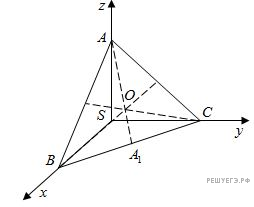 а) Поместим пирамиду в декартову систему координат с началом S, как показано на рисунке. В качестве вершины пирамиды выберем точку А.