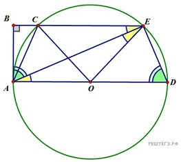 Сделаем дополнительное построение: продолжим AO до пересечения с другой точкой окружности, которую обозначим D. Соединим точки E и D отрезком. Мы получили вписанную трапецию ACED, одним основанием которой будет служить диаметр заданной окружности.