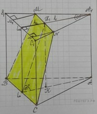 а) Пусть плоскость α пересекает высоту A1L1 верхнего основания призмы в точке K1. Через эту точку проведем прямую, параллельную B1C1, которая пересечет B1A1 в точке M, прямую C1A1 — в точке N.