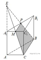 а) Докажите, что сечение призмы плоскостью BPM проходит через точку C.